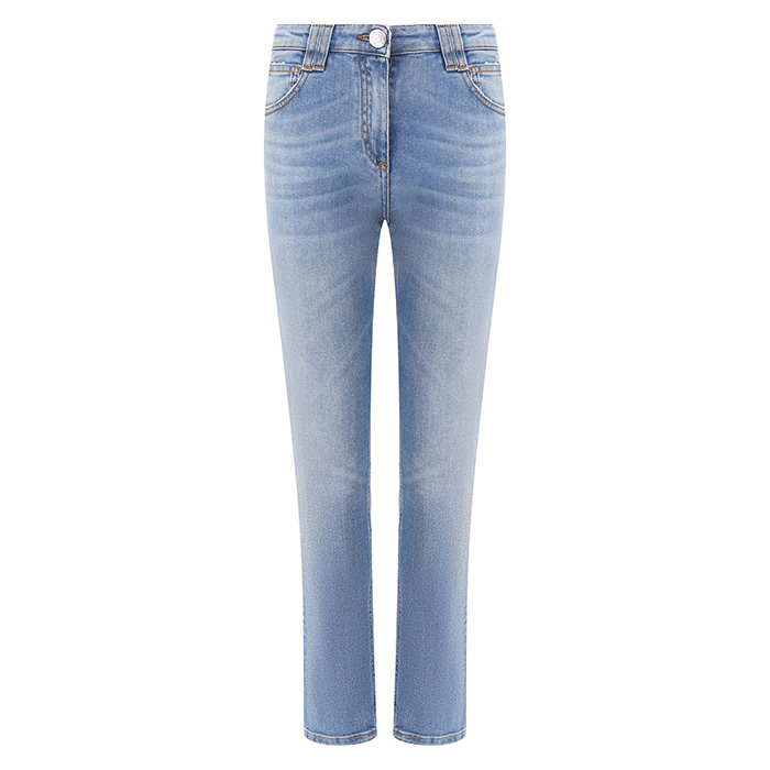 Джинсы с завышенной талией из коллекции экологичной моды. Светлый цвет, 5 карманов и длина по щиколотку. Скрытая ширинка на молнии с застежкой на пуговицу и плотная посадка. Высокая талия притягивает взгляды и подчеркивает силуэт.